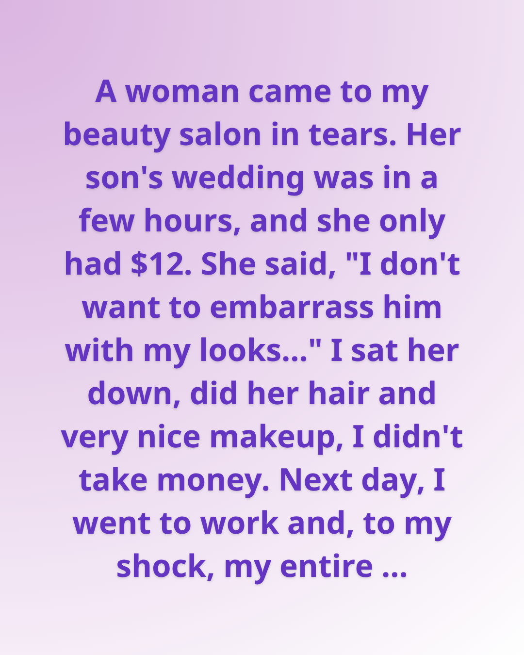 I gently guided her to a chair. I styled her hair, applied soft, elegant makeup, and made sure she looked and felt radiant. When we were done, she tried to hand me the money—but I refused to take it.