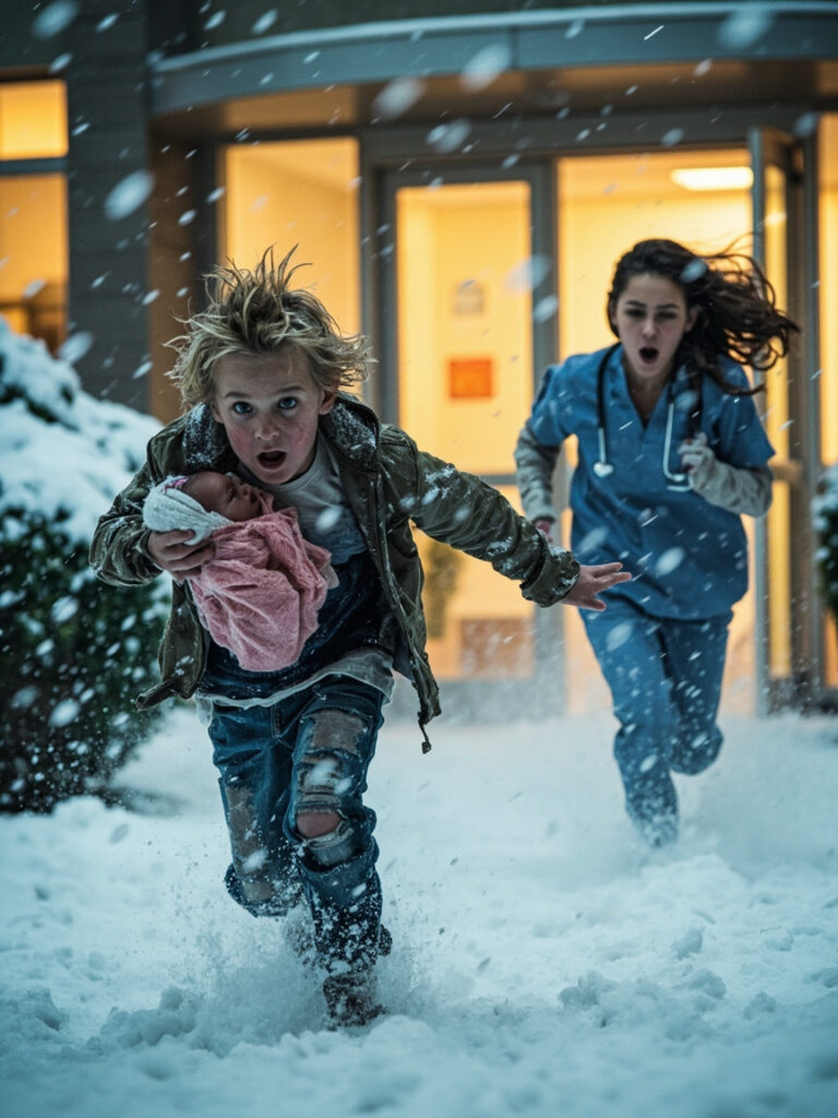 At first, she thought she was seeing things — a small boy, barefoot, his oversized sweatshirt torn at the sleeve, clutching something wrapped in a thin pink blanket. Then the movement registered — the bundle in his arms wasn’t a toy. It was a baby. And both of them were shaking.