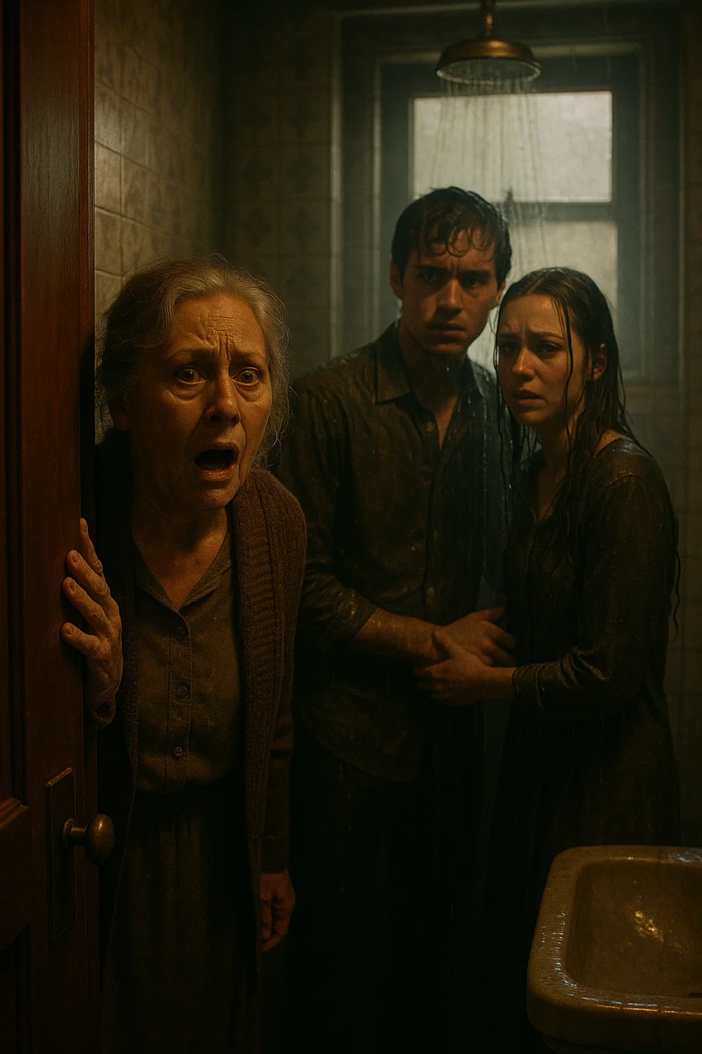 Rachel sat on the floor, soaking wet, sobbing.