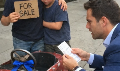 The Two Boys Tried to Sell a Broken Red Pedal Car on a Street That Wasn’t Meant for Them — “It’s Not Just a Toy… It’s Our Bicycle,” the Older One Said While Holding Back Tears, But the Moment the Man in the Blue Suit Read the Folded Pharmacy Receipt, Everything Around Him Went Still and He Realized This Wasn’t a Sale… It Was a Past He Had Walked Away From Waiting to Be Faced