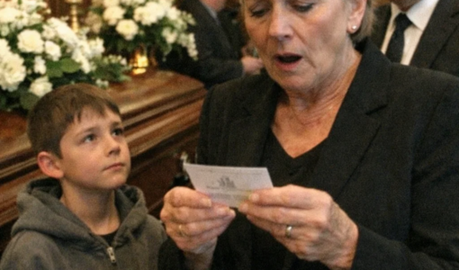 The Funeral Was Meant to Be Private Until a Boy in a Worn Hoodie Stepped Forward Beside the Casket — “He Said If He Died… You Would Take Me,” He Whispered, But the Moment She Read the Six Words Written on the Back of the Card, the Woman Who Controlled Everything Realized the Truth She Buried Was Standing Right in Front of Her